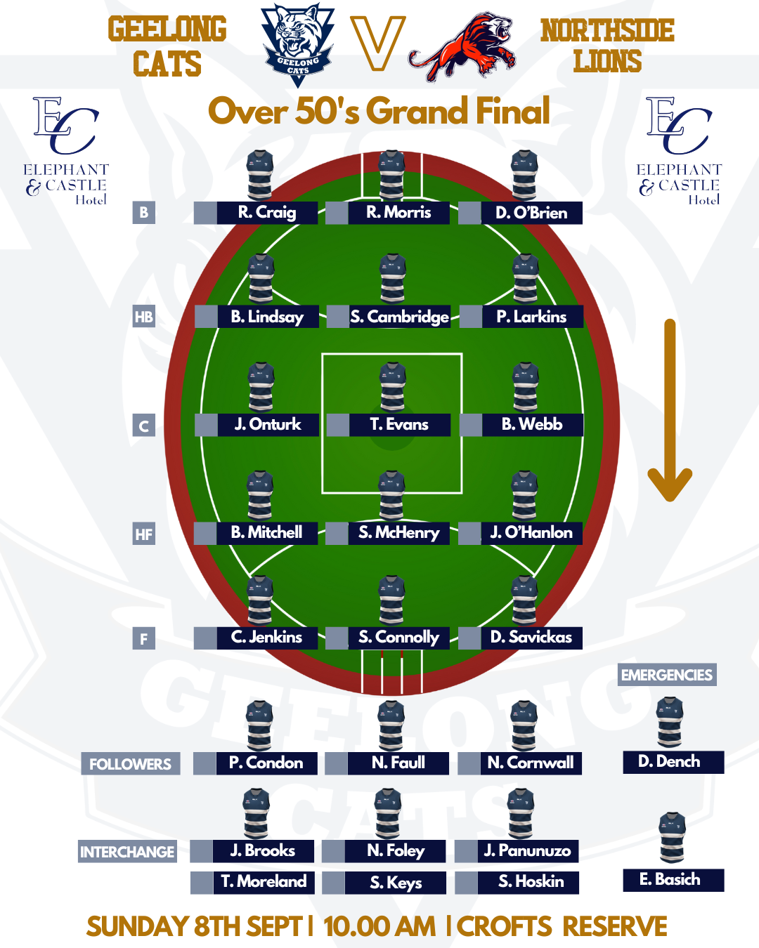 For live updates and scores, be sure to check our Facebook page or website. Don’t miss the chance to see our team go head-to-head with the Northside Lions, featuring former Brownlow Medalist Tony Liberatore.